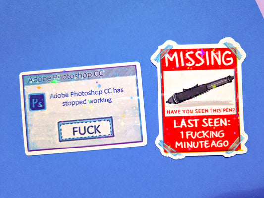 Missing Pen and PS Stopped Working Stickers - Holographic Vinyl Stickers